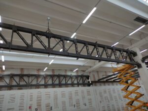 Il tutto è stato costruito in officina Tecos, portato all’interno del capannone sede dell’intervento, assemblato a terra per poi essere sollevato con un’autogru collocata all’esterno del fabbricato è messo in posizione corretta.