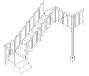 La soluzione risulta leggera e discreta, inserita in un piccolo spazio che rimane però ben fruibile. La scala è inoltre completata da parapetti a norma e i gradini in grigliato la rendono totalmente antiscivolo.
